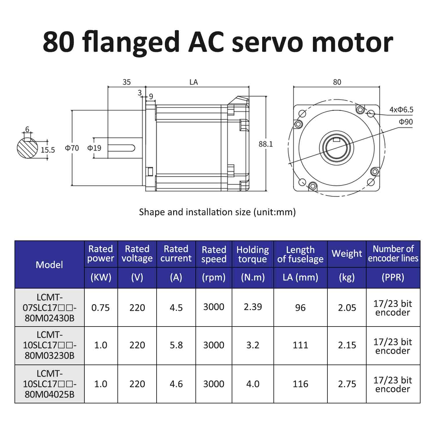 | モーターモデル | LCMT-07SLC17-80M02430B | LCMT-10SLC17-80M03230B | LCMT-10SLC17-80M04025B |
