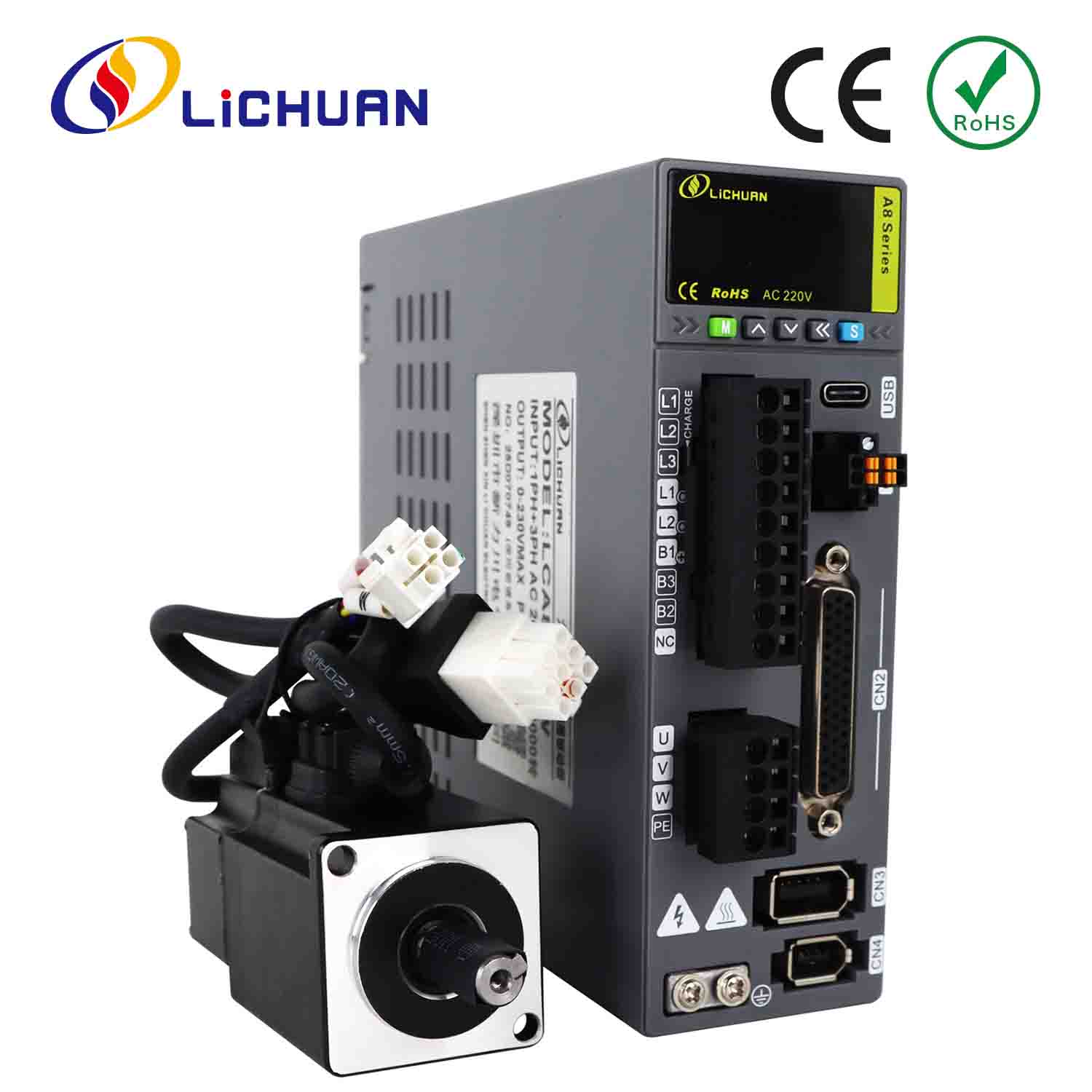 Lichuan AC サーボ モーター ドライバー キット A8 高精度 STO ABZ 1001W 1KW 4.0N.m 220V 4.6A 2500/3000RPM IP65