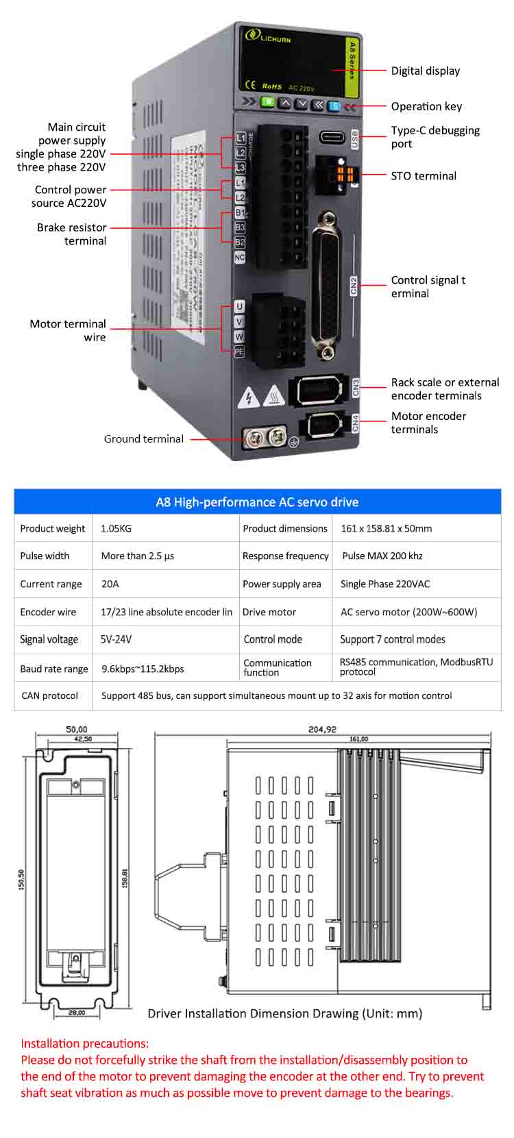 Lichuan A8 高精度 STO ABZ AC サーボ モーター ドライバー キット - 製品概要
