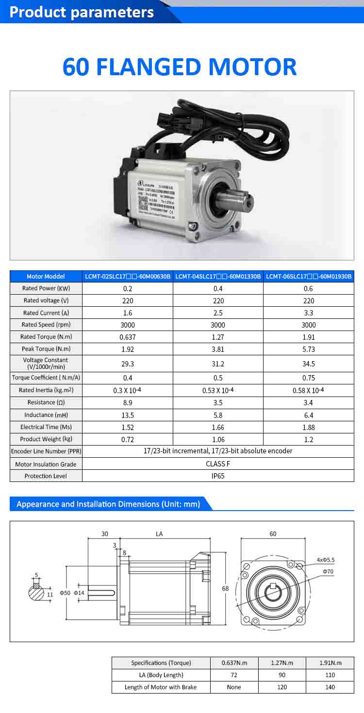 | モーターモデル | LCMT-02SLC17-60M00630B | LCMT-04SLC17-60M01330B | LCMT-06SLC17-60M01930B |
