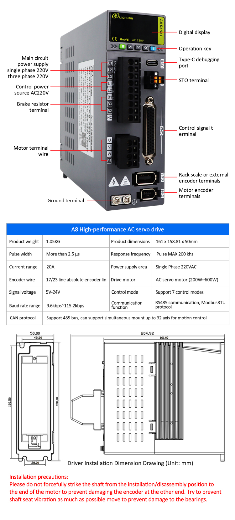 新製品 パルス/RS485 200W/400W/600W 2500/3000RPM 17/23 ビット インクリメンタル/アブソリュート エンコーダ A8 高精度 STO ABZ AC サーボ モーター ドライバー キットは、LICHUAN® の CE/ROHS を備えた中国製です。当社の工場は、中国の有名なパルス/RS485 200W/400W/600W 2500/3000RPM A8 高精度 STO ABZ AC サーボ モーター ドライバー キット メーカーおよびサプライヤーです。当社の製品は高品質・耐久性・安定動作・低価格を実現しております。そして、カスタマイズされたサービスを提供します。
